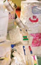 To begin with, the teachers wanted a ‘hook’ to grab the children’s attention and decided to place one child in a foilcovered box - with holes cut out for head, arms and legs - out of the sight of other children. The child entered the classroom and began to talk in a robotic voice and to move robotically. The children were asked to focus on some key questions: